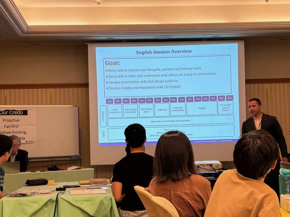 そして、咸臨丸の重要なセッションの一つである英語セッションがスタートしました。毎月行われるこのセッションのゴールは以下の通りです。