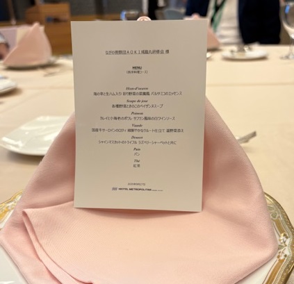 気づけば午後7時になり、夕食はサプライズの西洋料理フルコースでした。しかし、これも咸臨丸のワークショップの一環であり、テーブルマナーの実践も兼ねての食事となりました。ホテルの講師の先生のレクチャーに従いながら、実際に食べて学ぶワークショップです。CREWの皆さんは緊張していたと思いますが、フルコースを楽しめたことでしょう。