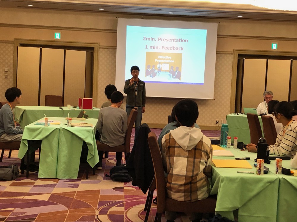 今日はSpeaking Styleに注意しながら、全員の前の2分間スピーチです。声のボリュームやトーン、リズム、そして6つのジェスチャー、アイコンタクトに気を配ります。そしてプレゼンテーション後は、CREWからのフィードバックを受けました。
